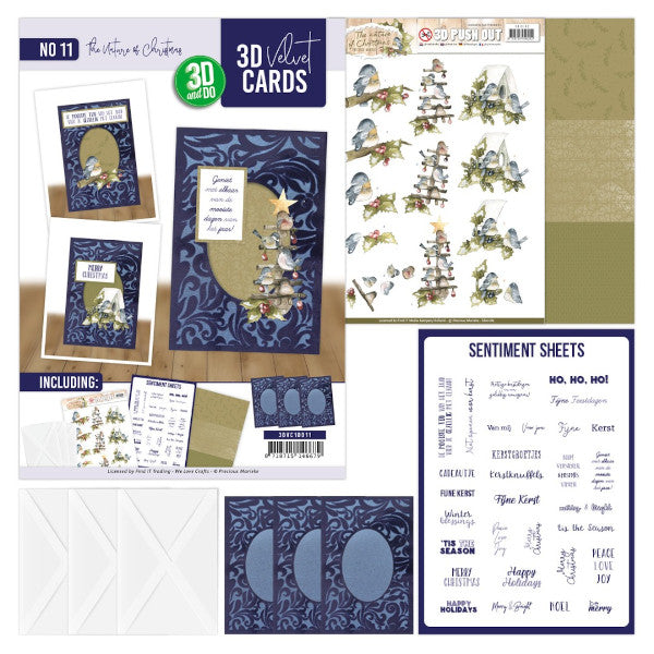 3DVC10011The 3D Velvet Cards set "Falling for Christmas" contains everything you need to create beautiful, festive greeting cards with an elegant velvet design. This enchanting set includes a push-out sheet and a sentiment sheet with heartwarming texts in both Dutch and English. You will also receive 3 white envelopes, an atmospheric background paper and 3 luxurious velvet cards that feel wonderfully soft. Perfect for sharing the magic of Christmas with others in a loving way.